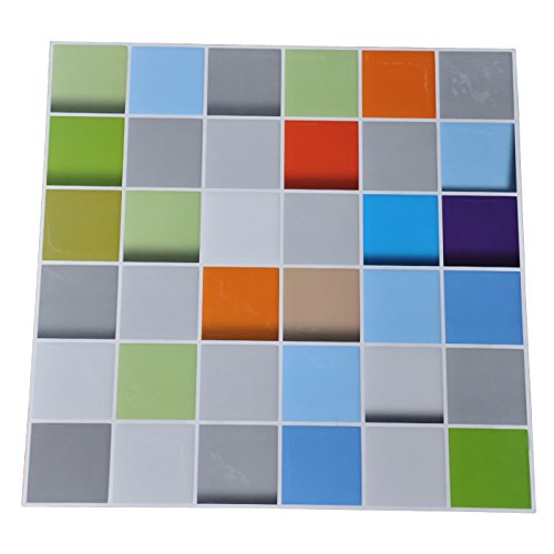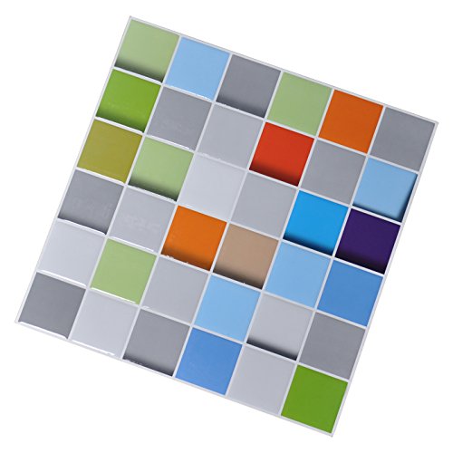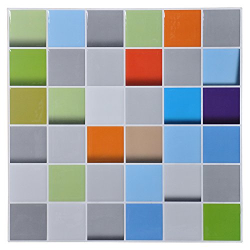 Art3d 12"x12" Self Adhesive Wall Tile Peel and Stick Mosaic Backsplash for Kitchen, Colorful Square (6 Pack)