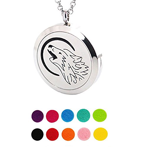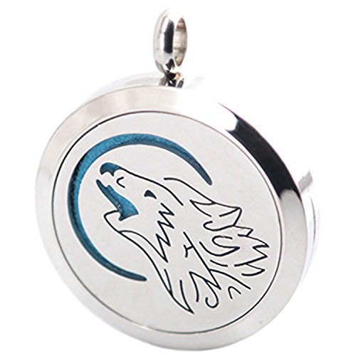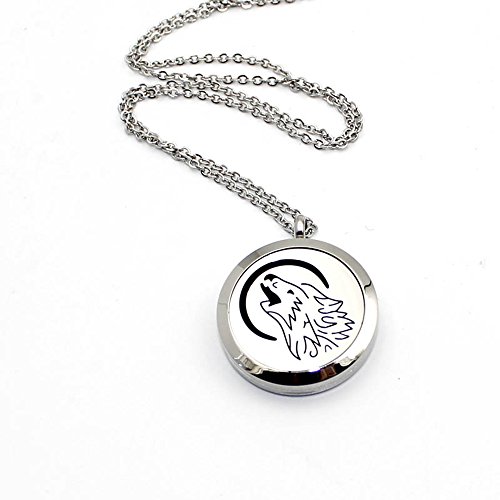 Stainless Steel Wolf Charm Locket, Aromatherapy Essential Oil Scented Diffuser Pendant Necklace 23.6" Length for Men