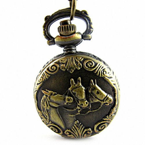 -. Title : YouYouPifa Bronze Retro Three Horse Pattern Design Relief Small Pocket Watch