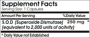 Product Description As an enzyme, SOD has particular value as an antioxidant that may help to protect against cell destruction. DIRECTIONS: For adults, take one (1) capsule daily, preferably with a meal. 0