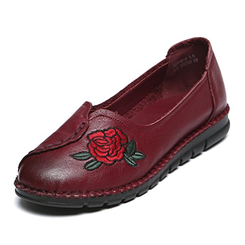 -. Title : フラットパンプス 婦人靴 花柄 刺繍 女性靴 柔軟性抜群 ワインレッド ローヒール レディース 疲れにくい コンフォート 大きいサイズ 普段履き 22.5CM-25CM 防滑 高齢者の靴 レザー 母の日のプレゼント オフィス ママの靴
