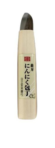 にんにく収穫時に根を切り落としたり、皮を剥いだりする包丁です。根の盤茎を切り取る際、R刃を根に当てると実を傷つけずに切り落すことができます。刃は白紙2号鋼を使用。切味、耐久性もよく研ぎやすいです。押切タイプなので上から押さえて切ることができます。こだわりの日本製です。 |