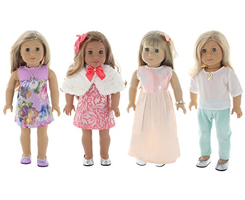 [Product Information]- 4 OUTFITS- These clothes were designed to fit American Girl Dolls and all other similarly sized 18" dolls.