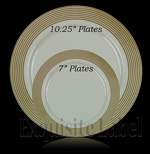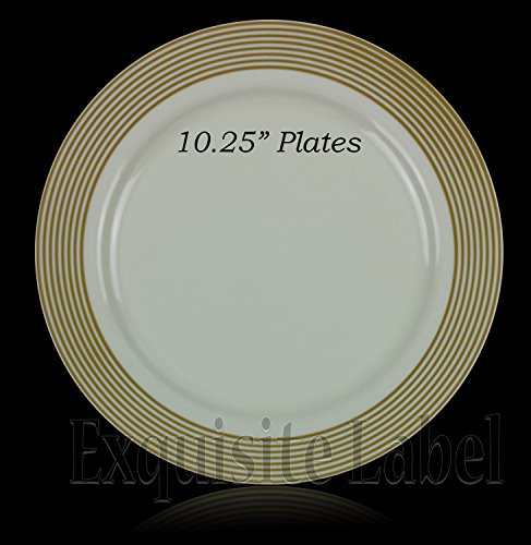 "Exquisite Label" Cream with Gold Heavyweight Plastic Elegant Disposable Plates, Wedding Party Elegant Dinnerware, Striped Collection (40, 10.25" Dinner Plates)