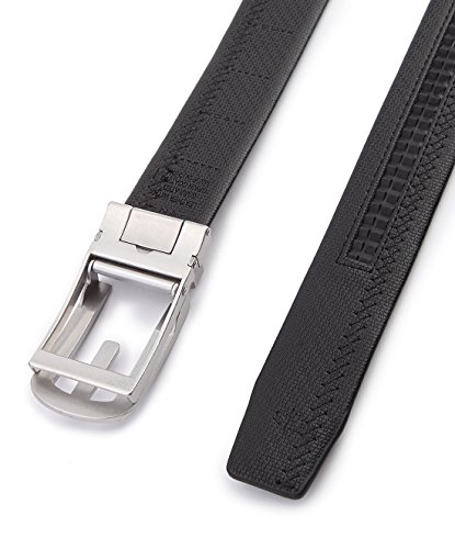 EXACT-FITTING: No More Holes in the strap any more.This belt provides a 32 uniques sliding positions in the ratchet of strap which enable you a micro adjustment to adapt your waist variation. Idea Size Mark on strap and Easy-Swapping Design in buckle, It allows you a Exactly-Fitting size by simply taking off the strap and cutting accordingly. In Case Buy Bigger, No Need To Return, Just Cut It to Fit!