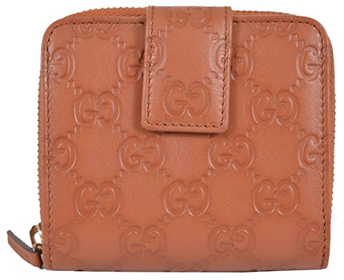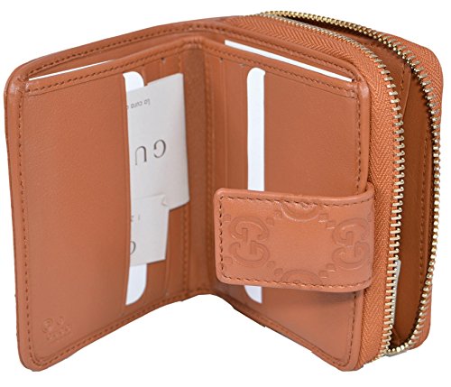 -. Title : Women's Saffron Tan Leather GG ssima French Zip Wallet W/Coin