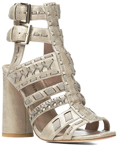 Color/material: light taupe tumbled metallic brush off. Design details: light gold-tone hardware. Buckle closure. Nappa leather insole. Buffed Leather sole. 3.95in heel. Please note: All measurements are approximate and were taken from a size 6M; slight variations may occur.. Imported