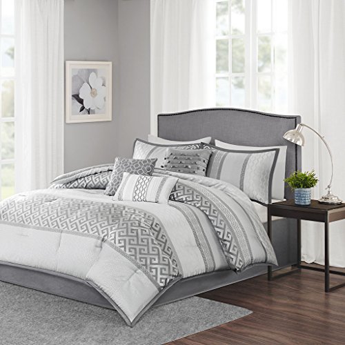 Studio : Ken Forging Publisher : Ken Forging Binding : Kitchen Product Description The Bennett comforter set provides a peaceful update to your bedroom with its soft shades of charcoal and silver. Several geometric prints adorn this collection working together in large and small stripes for an updated traditional look. Three decorative pillows use embroidery and fabric manipulation techniques for a cohesive look in your space. 0