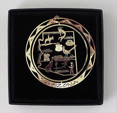 Arizona State Brass Christmas Ornament Black Leatherette Gift Box