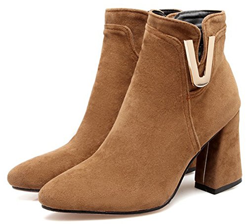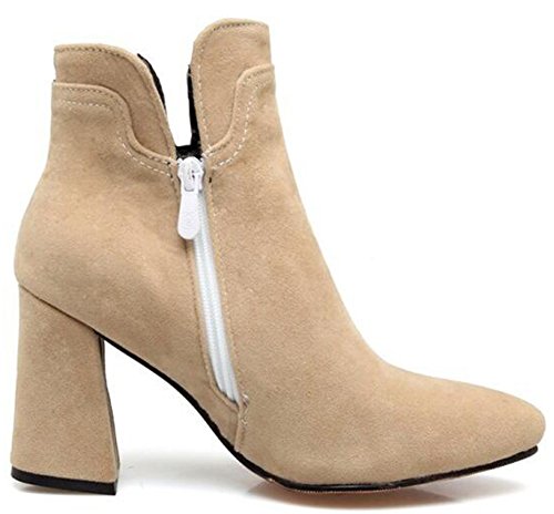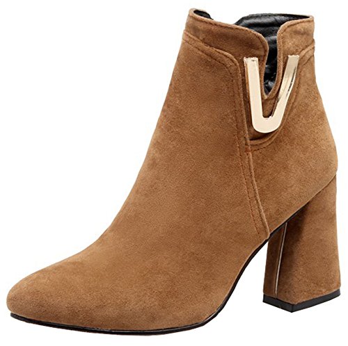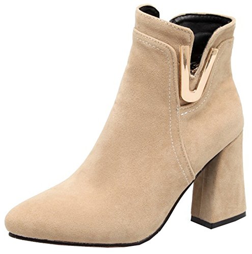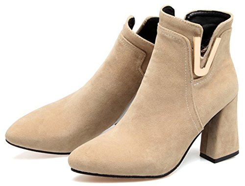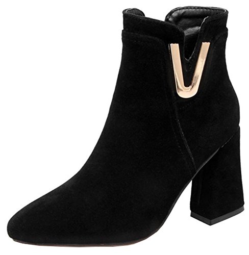 (Mofri)/Women's/Boots/DIRECT FROM USA/Mofri Women's Fashion Chunky High Heel Ankle Booties Pointed Toe Side Zipper Faux Suede Short Boots