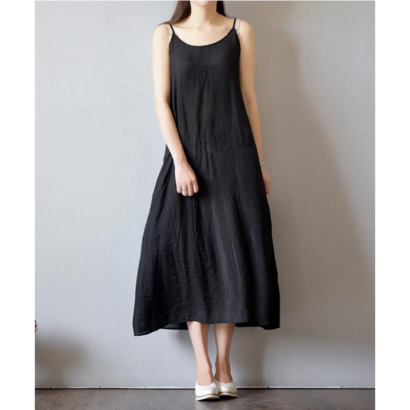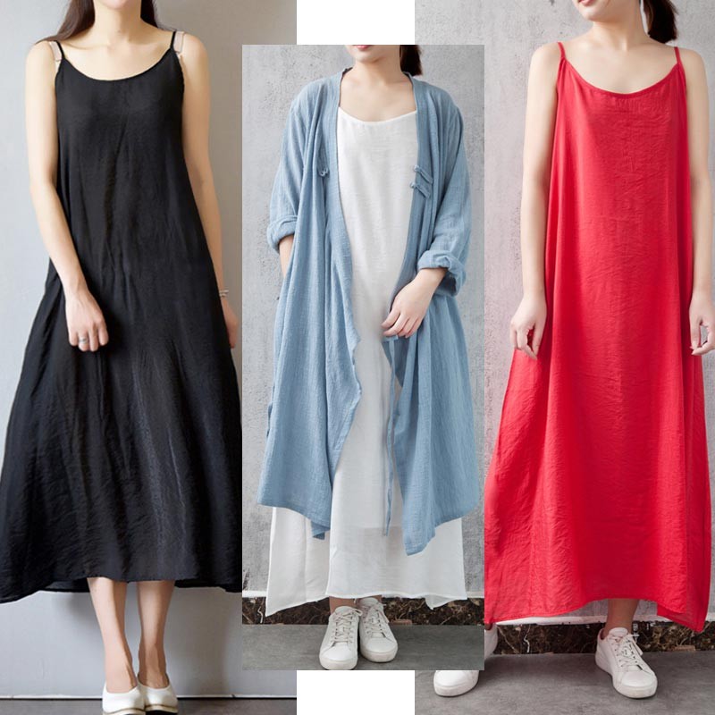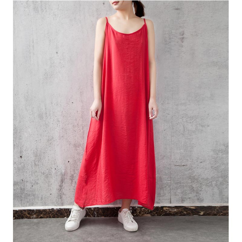 サラッとしたコットンのAラインマキシ丈ストラップワンピース♪