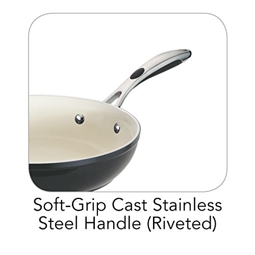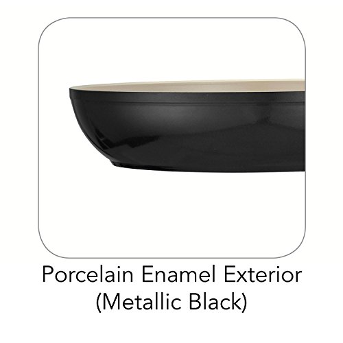 -. Feature : Cold-Forged, heavy-gauge aluminum construction for even heat distribution with a durable, easy-to-clean metallic black porcelain enamel exterior / Pfoa, PTFE, lead and cadmium-free ceramic nonstick interior provides a healthy, eco-friendly, quick release and easy cleanup cooking surface / Ergonomically designed, cast stainless steel handles feature a stay-cool, soft-grip accent with a convenient hang-hole for use with pot racks / Dishwasher and oven-safe (up to 350 Degree Fahrenheit or 176 Degree Celsius); compatible with gas, electric and ceramic glass cooktops / Made in Italy, assembled and packaged in the USA; lifetime warranty