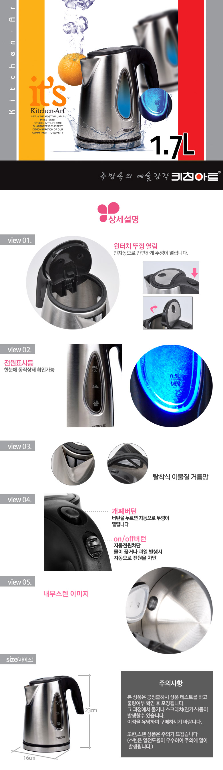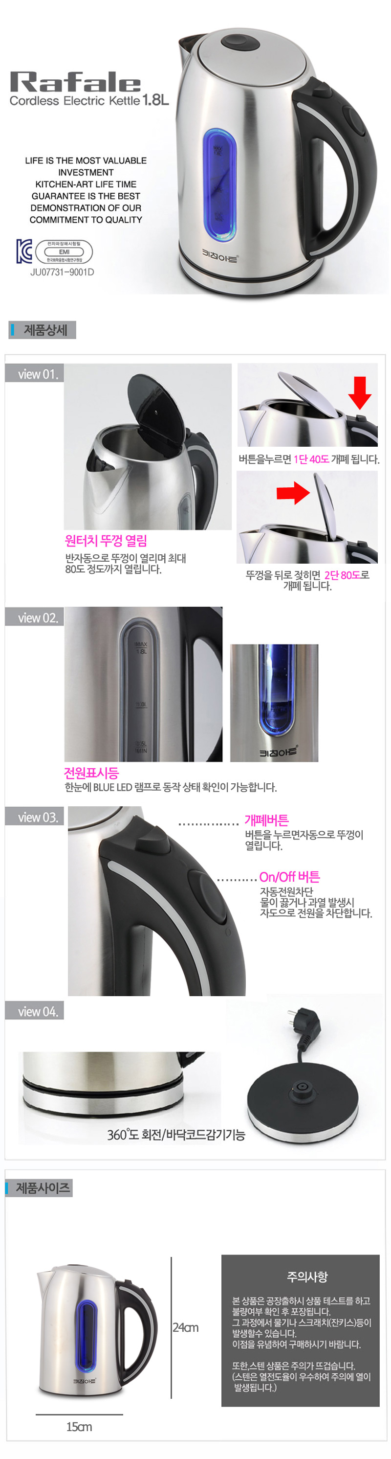[Kitchen Art] Zero stain cordless electric kettle 1.2L KAEK-GF12PS