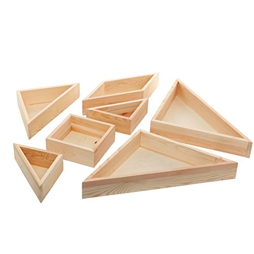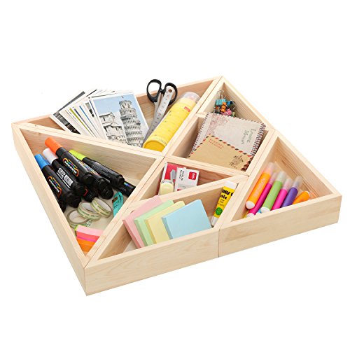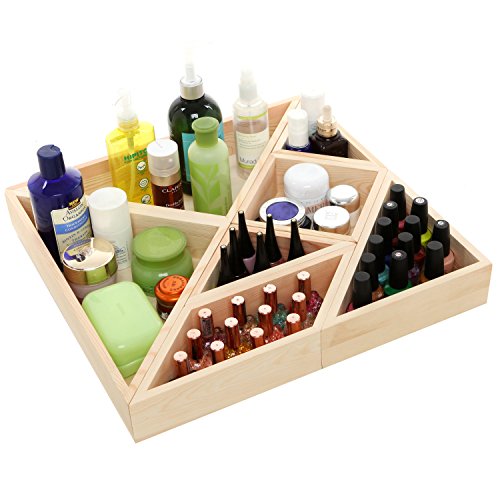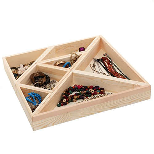Decorative Jewelry Storage Removable Tray Set, 7 Piece Geometric Wood Showcase Display Organizer, Beige