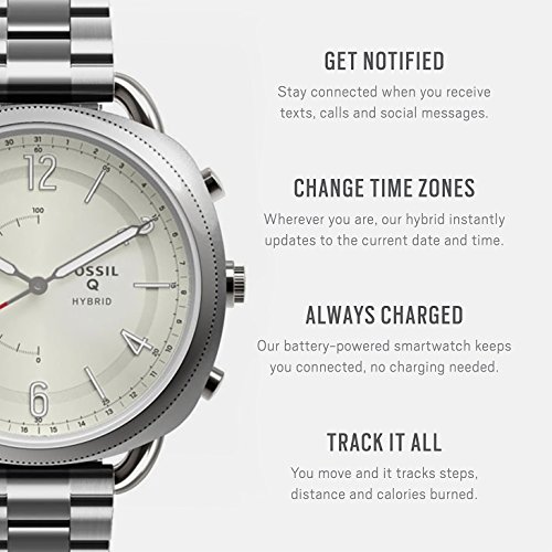 Studio : Fossil Publisher : Fossil Product Description Modernize your wristwear with Q Accomplice, our slimmest hybrid to date that looks like a watch, but acts like a smartwatch. Powered by the Fossil Q App, Fossil Q Hybrid Smartwatches are compatible with phones running Android OS OS 4.4 or iPhone 5iOS 8.2. Q App is provided by Fossil Group, Inc. so your data will be stored in the USA. 0