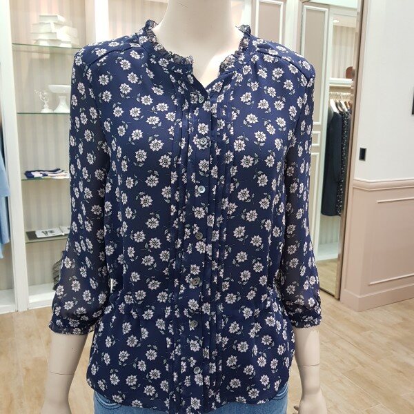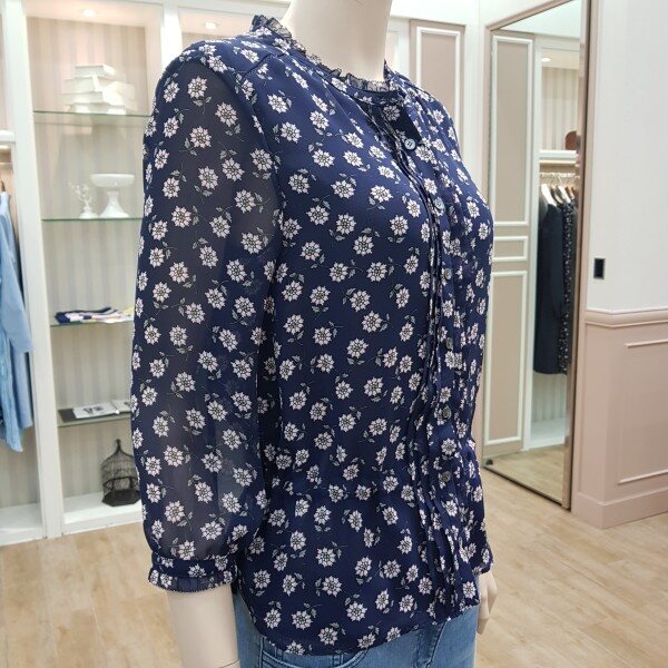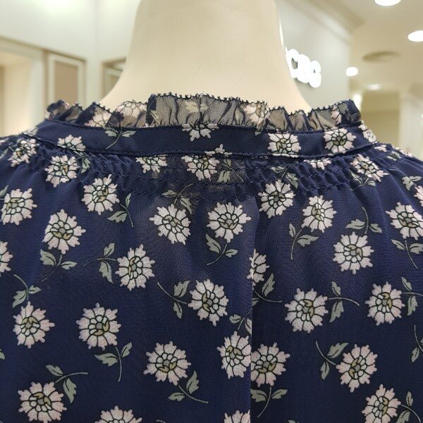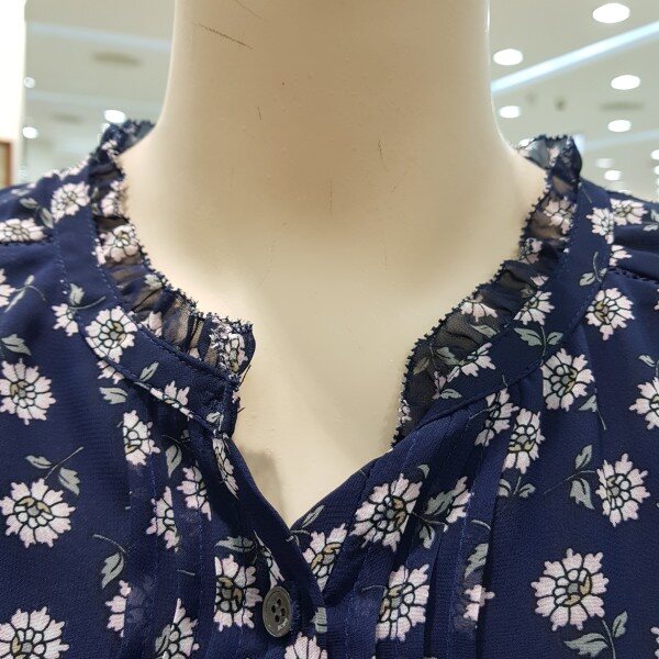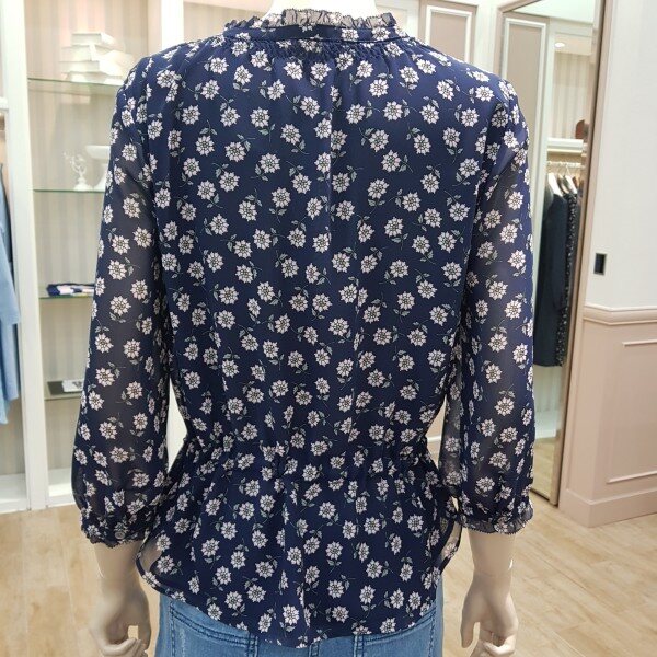가볍고 구김없는블라우스허리스트링으로 약간짧은스타일~넥라인과수매단레이스~스커트 외이드팬츠랑 연출하기굿~~55기준총장 57cm