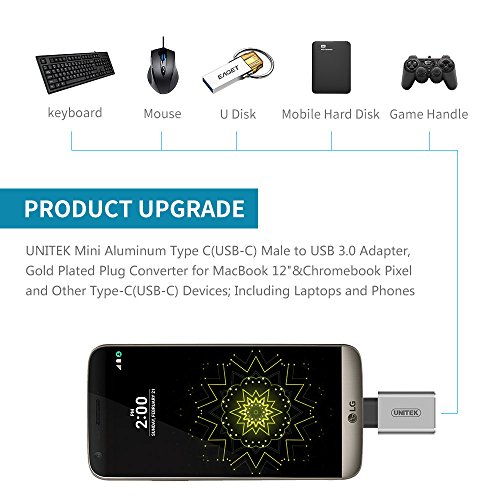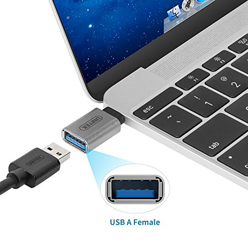 USB-C to USB 3.0 Mini Adapter, Unitek Aluminum Unibody for Macbook Pro 2016, MacBook 12-inch and other Type-C Devices (Grey )