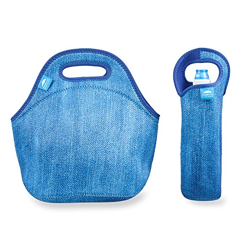 Chill your lunch for up to 6 hours with our extra-thick, 4mm Insulated Neoprene Lunch Set. Chic, convenient bundle includes roomy bag for lunch & separate sleeve for water bottle.