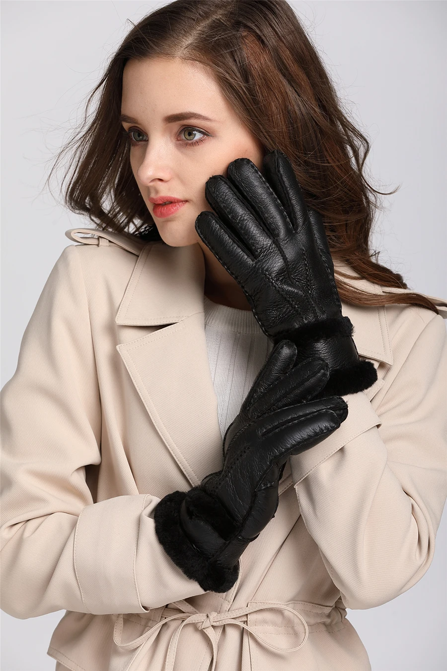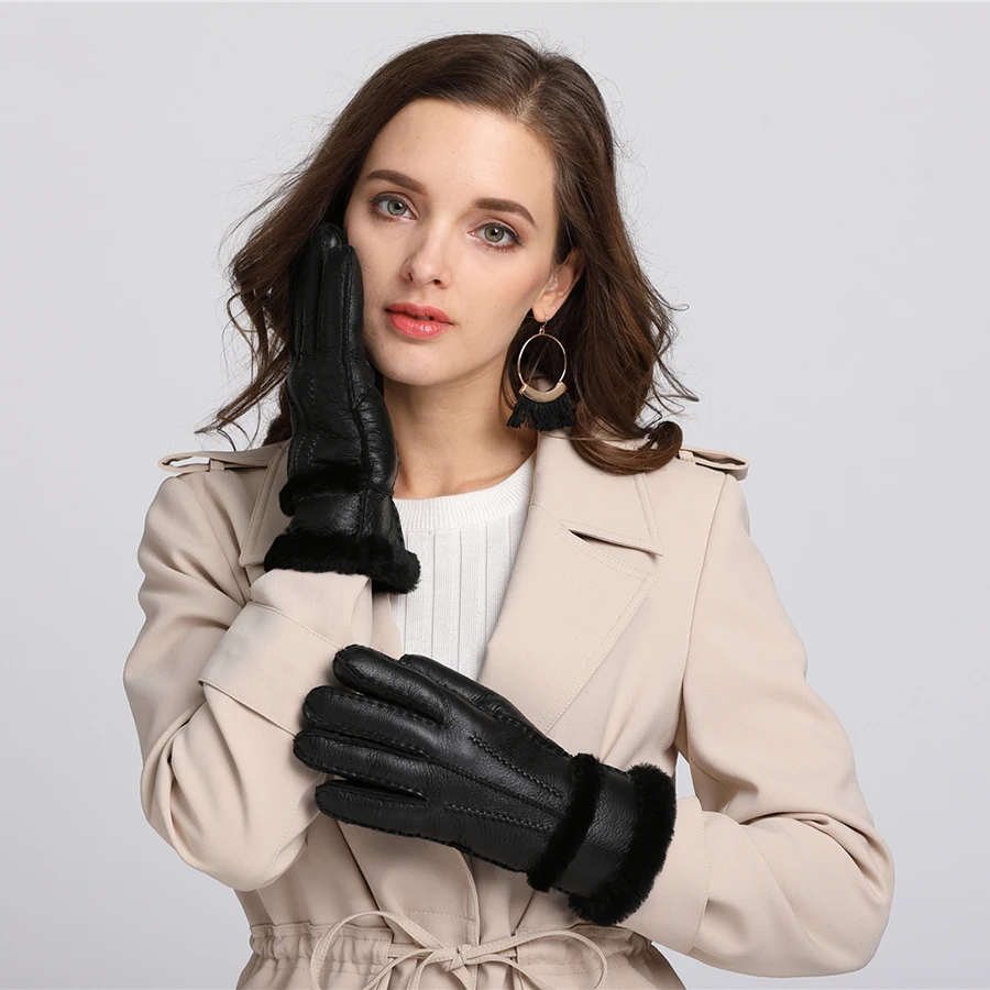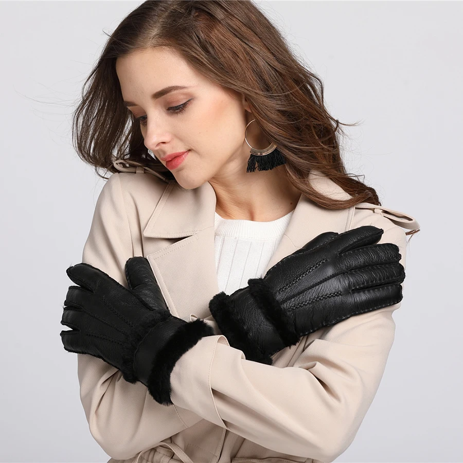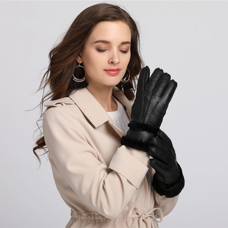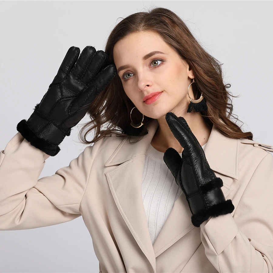 Item Name:Women Winter Gloves Mittens Warm Real Sheepskin Fur Glove for women