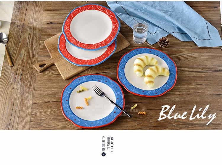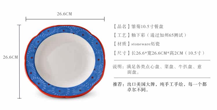 出口美国新款纯手绘釉下彩陶瓷盘子 牛排盘北欧简约款