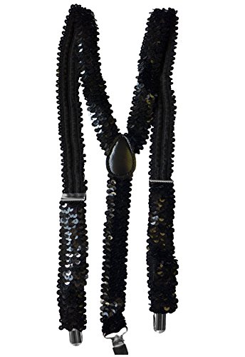 (DangerousFX)/Accessories/Suspenders Cummerbunds/DIRECT FROM USA/Sparkly Sequin Black Fancy Dress Party 80s Disco Dance Braces Hold Up Suspenders