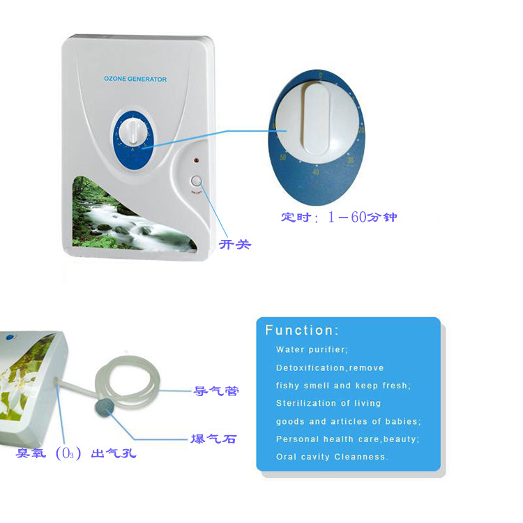 2, drinking water purification: water treatment by ozone is a high-quality raw water. O3 per liter of water only need to access to O3 2 minutes to remove residual chlorine, sterilization, disinfection, deodorization, removal of heavy metals, to prevent the formation of carcinogenic chloroform, increasing oxygen content of water, homemade ideal pure drinking water.