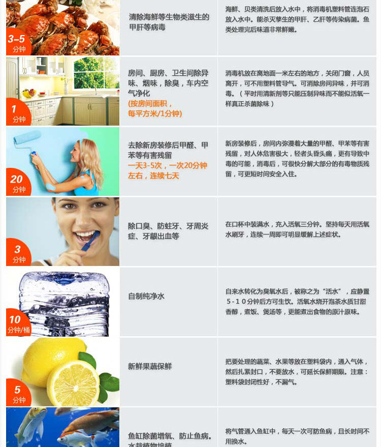8, deodorant: Because ozone has a strong oxidative decomposition, can be quickly and completely eliminate the air, the water smell.