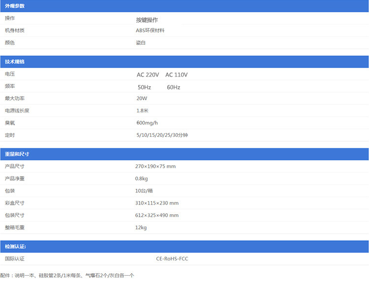 4, the air purification: the ozone pipe hanging at 1.7 meters above the height of emissions O3 20 - 30 minutes, you can effectively remove indoor smoke or decorative materials odor, dust sterilization, increase air oxygen content, fresh air, Allowing you to enjoy the forest at home after the rain-like fresh air (can be used for home, office, conference room, entertainment, smoke, dust, disinfection, to taste).