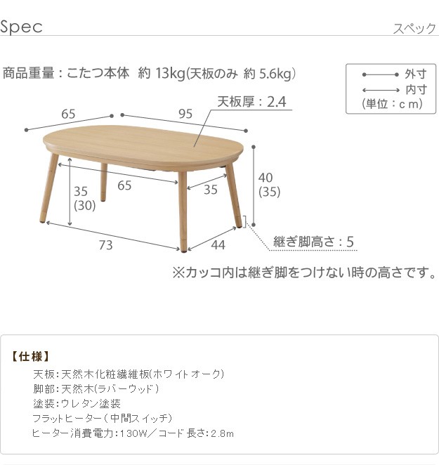 幅95x奥行65x高さ35/40cm(継脚5cm)