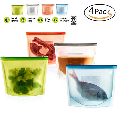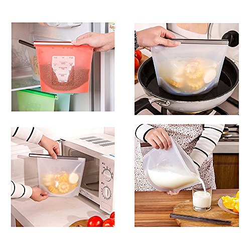 Silicone Food Bag, Reusable Airtight Seal Food Storage Container Reusale Freezer Leak-Proof Cooking Ziploc Bag Versatile Kitchen Utensil Set Of 4 Pcs for Freeze, Steam, Heat, Microwave
