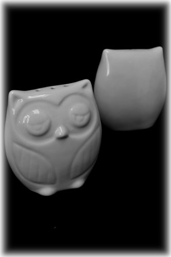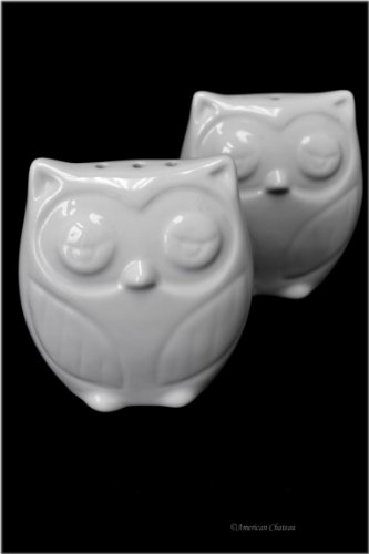 3" Small Squatting Owl White Porcelain Shaker Salt and Pepper Shakers Set