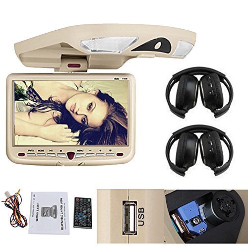 -. Title : Lightinthebox 9-inch Wide Screen Overhead Ceiling Monitor Video Flip Down Car DVD Player 2 Wireless Headphones. Features USB and SD Card Inputs, IR Transmission and Wireless FM Transmitter--Beige Tan