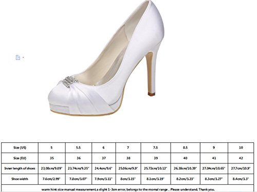 Binding : Apparel Product Description These gorgeous wedding heels pumps with comfortable platforms, offer multi colors to choose , classic bridal shoes with shiny rhinestones decoration on pleated vamps, make the shoes more elegant and dressy.Most suitable as prom heels pumps, evening party shoes, dress shoes ,prom, graduation, ceremony and any other Special Occasions Certainly if you want customize other colors to match your gown, pls contact us to confirm. High Heels Woman Shoes Satin Wedding Shoes With Rhinestone Bridal Shoes Dress Shoes