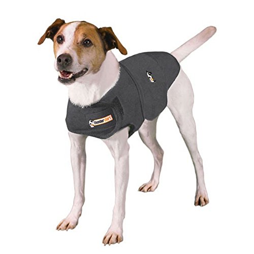 Studio : ThunderShirt Publisher : ThunderShirt Binding : Apparel Product Description The ThunderShirts patented design applies a gentle, constant pressure that has a dramatic calming effect for over 80% of dogs. The most effective anxiety solution as voted by veterinarians, ThunderShirt is already helping hundreds of thousands of dogs and cats worldwide as a medication free alternative for coping with storms, separation, travel and many other anxieties. No need for training or medication. Sizes (chest size and weight): XXS- 9-13in/less than 7lbs, XS- 13-17in/8-14lbs, S- 17-21in/15-25lbs, M- 21-25in/26-40lbs, L- 25-30in/41-64lbs, XL- 30-37in/65-110lbs, XXL- 37-50in/more than 110lbs. 0