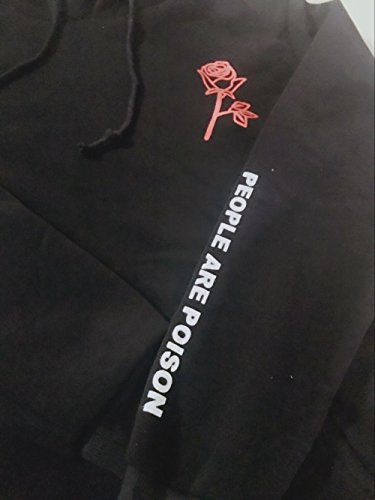 -. Title : EnFei レディース 長袖 フード付き パーカー バラ 刺繍デザイン 英字柄 服 春 秋 冬 シンプル 可愛い ポケット付き トレーナー スウェット