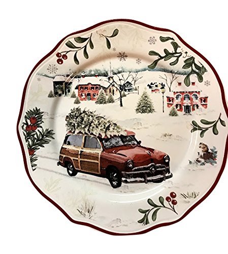 Christmas 8.5" Decorative Salad Plate - Vintage Ford Woody Design