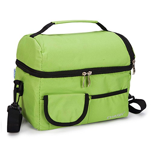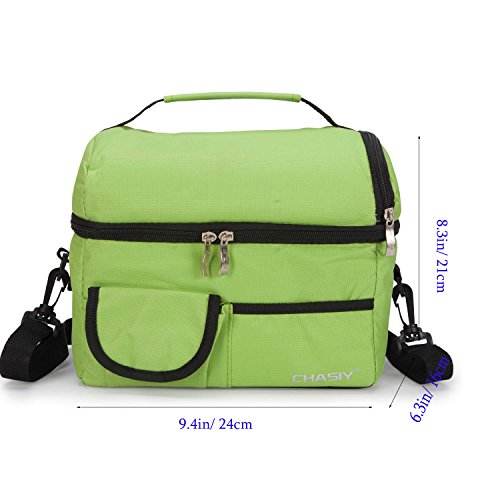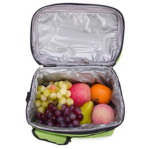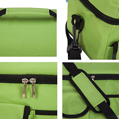 Large Unisex Insulated Lunch Tote Bag Locks in Heat & Cold Box for Camping Works Adult Men Women Kids with Adjustable Strap Green