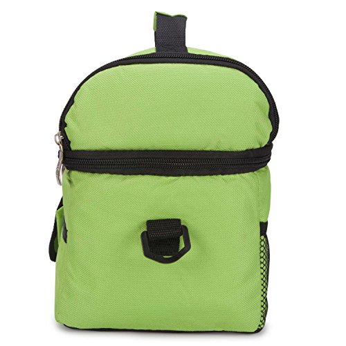 Spacious Capacity. The top detachable compartment is perfect for your water bottle and some small snacks. Large main compartment perfect fit lunch, drinks, salad, and snacks for through the work day. The front small pocket and back mesh pocket for you place the cellphone, wallet, napkins and other stuffs.