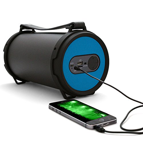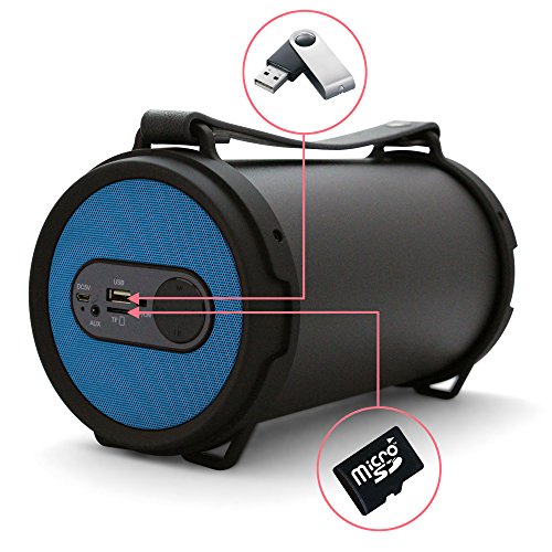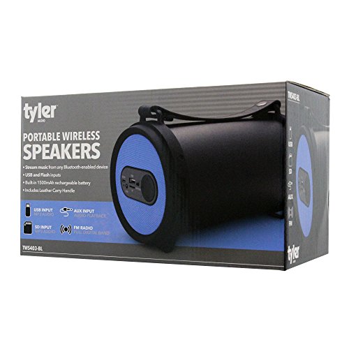 Tyler Portable Wireless Bluetooth Speaker TWS403-BL, Indoor/Outdoor 2.1 Hi-Fi Stereo Cylinder Loud Speaker, with Dual High Performance Drivers, SD Card Input, Aux Line-In, FM Tuner, and USB Port, Blue