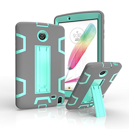 LG G Pad 2 8.0 /G Pad F 8.0 Case,Tading Drop Protection Heavy Duty Armor Defender Shockproof Hybrid Protective Cover with Kickstand for LG G Pad II 8.0 V495 V496 V498 - Grey&Mint