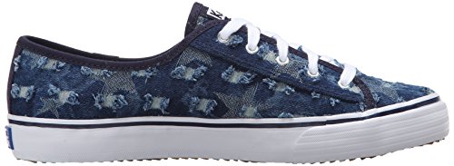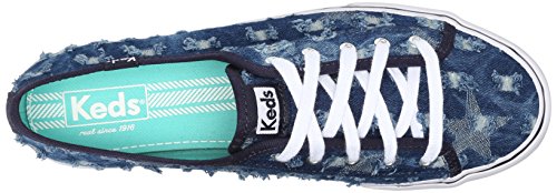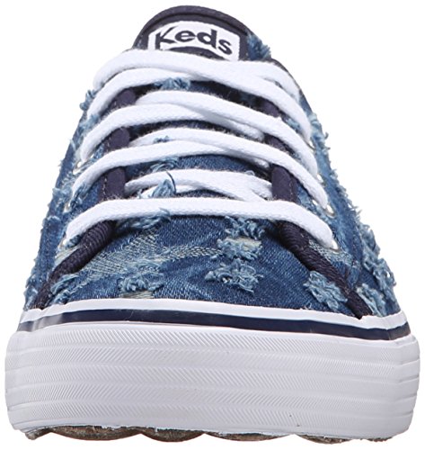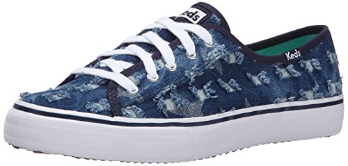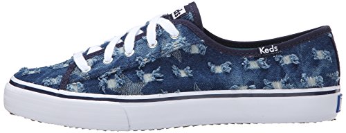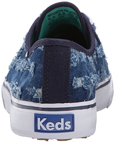 Low-cut sneaker in faded denim featuring allover abrasions with frayed edges Solid trim Contrast midsole stripe Brand : Keds Item model num : Double Up Distressed Denim MPN(PartNumber) : WF53507 EAN : 0044212763438 Product Dimensions(LxWxH) :