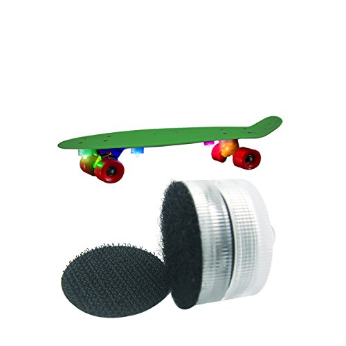 Instantly customize your ride with Self-adhesive LED Underglow Lighting! These lights cast bright, vivid ground effects beams for your skateboard, longboard, self balancing scooter or kick scooter. Super lightweight and concealed until you manually turn them on. Combine different color lights to personalize your ride, show your team spirit, or represent your school while cruising in style and safety. Available in 7 blazing colors; fully customizable color combos and layouts put you in control. Simply stick on the lights and go - no board disassembly or screws required, and no wires or heavy batteries to slow you down. This is the hottest riding accessory in 2016. Scooter not included. Buy 1, you will get 4 lights of the same color Each light includes 2 CR2032 batteries Each light includes 1 insulating paper Self-adhesive Velcro