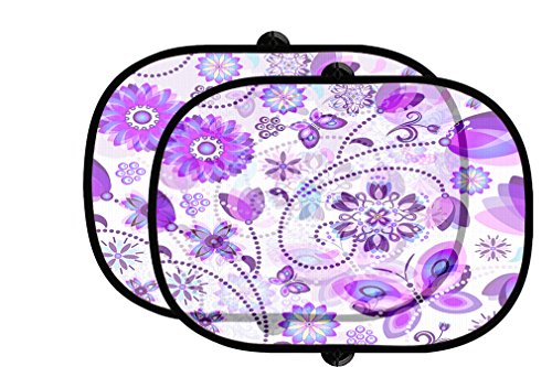 -. Title : Purple Flowers And Butterfly Auto Foldable Front Rear Side Window Sunshade Mesh