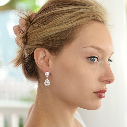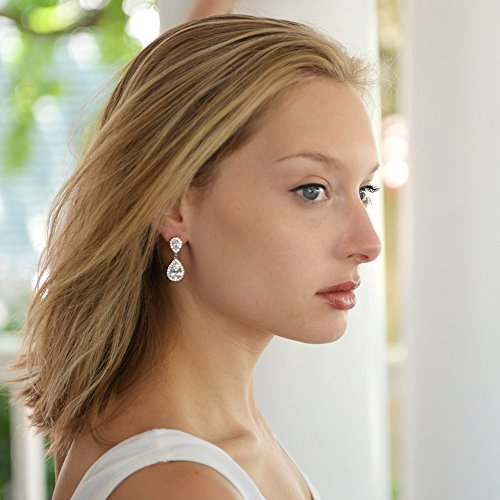 -. Feature : Luxurious Teardrop Earrings Pear-Shaped CZ Oval Top and Vintage Framed Drop; Measure 1 1/4 Inches High / Genuine Silver Platinum Plating with the Look of Fine Jewelry; Post Earrings with Comfort Disk Backs / Finest Quality AAAAA Grade Cubic Zirconia for Diamond-like Brilliance / Risk-Free Purchase; 100% Money-Back if Not Delighted; Lifetime Guarantee / Beautifully Packaged in Luxurious Silver-Embossed Mariell Signature Gift Box Ideal for Bridal, Wedding, Prom, Bridesmaids, Mother of the Bride, Pageants, Homecoming, Holidays, Special Occasions, Birthday, Valentine's Day, Mother's Day or Anniversary Gifts