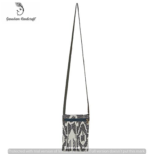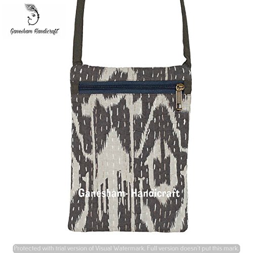 (Ganesham)/Accessories/Wallets, Money Key Organizers/DIRECT FROM USA/Grey Ikat Indian Vintage Kantha Cross Body Passport and Cards Bag Handmade Travelling Bag Mobil...