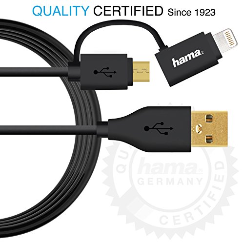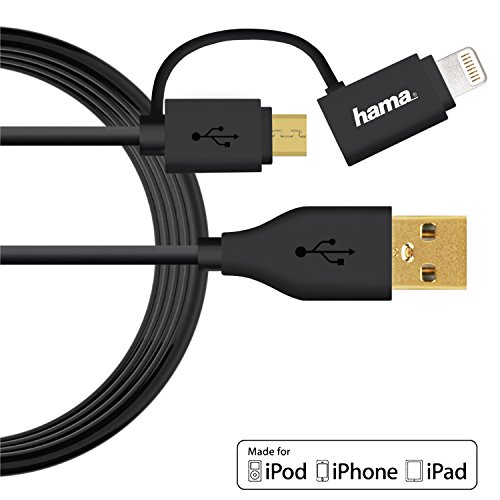 Hama Micro USB Cable with Apple MFI Lightning Plug Adapter 4ft Black