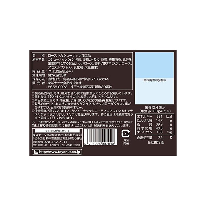 원본상품명: 東洋ナッツ 焦がしキャラメルナッツ カシュナッツ 75g
