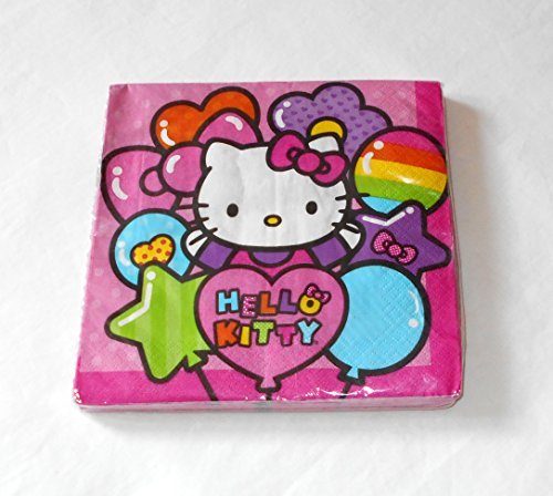 Title : Hello Kitty Party Lunch Napkins - Balloons and Heart Shape Pink Balloon with Hello Kitty - 16 Napkins