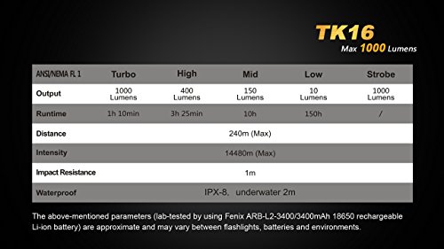 -. Title : Bundle: Fenix TK16 LED Flashlight 1000 Lumen TK15 upgrade Dual Tactical Tail Switch with two CR123A Batteries