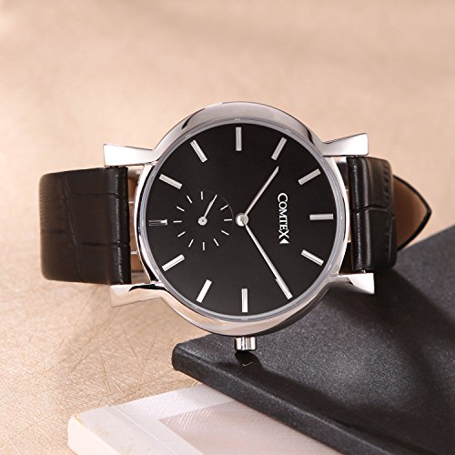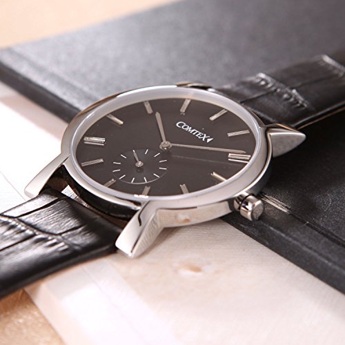 -. Title : Comtex 腕時計 ブラック レザーバンドウォッチ スモールセコンド 男性 腕時計 おしゃれ